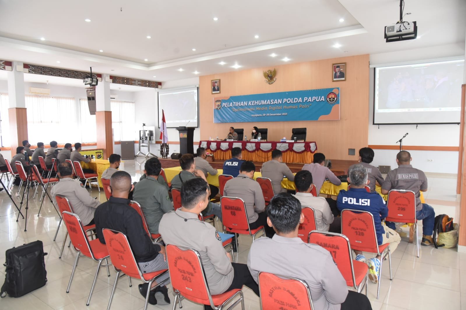 Jayapura, Matamedia.co.id – Pada hari Selasa tanggal 28 Desember 2021 pukul 08.30 Wit bertempat di Aula Rastra Samara Polda Papua telah dilaksanakan pelatihan Kehumasan Polda Papua dengan tema “Optimalisasi Media Digital Humas Polri”.