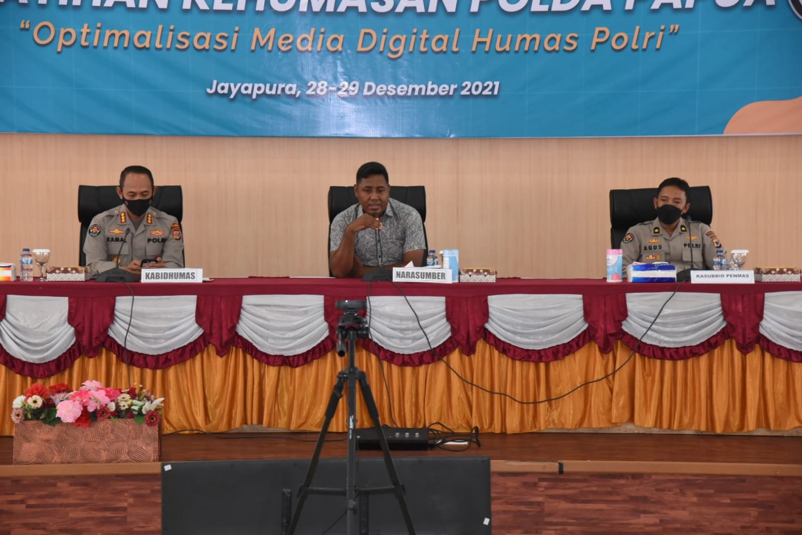 Jayapura, Matamedia.co.id – Pada hari Selasa tanggal 28 Desember 2021 pukul 08.30 Wit bertempat di Aula Rastra Samara Polda Papua telah dilaksanakan pelatihan Kehumasan Polda Papua dengan tema “Optimalisasi Media Digital Humas Polri”.