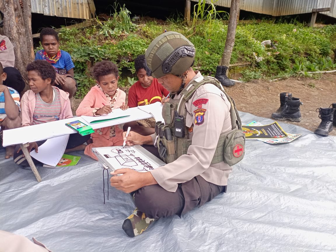 Ilaga, Matamedia.co.id – Dalam rangka memberikan pelayanan terbaik kepada masyarakat di Tanah Papua, personil Satgas Ops Damai Cartenz Wilayah Puncak melaksanakan program Polisi Pi Ajar kepada anak-anak di Kago Distrik Ilaga Kabupaten Puncak, Rabu (07/09/2022).