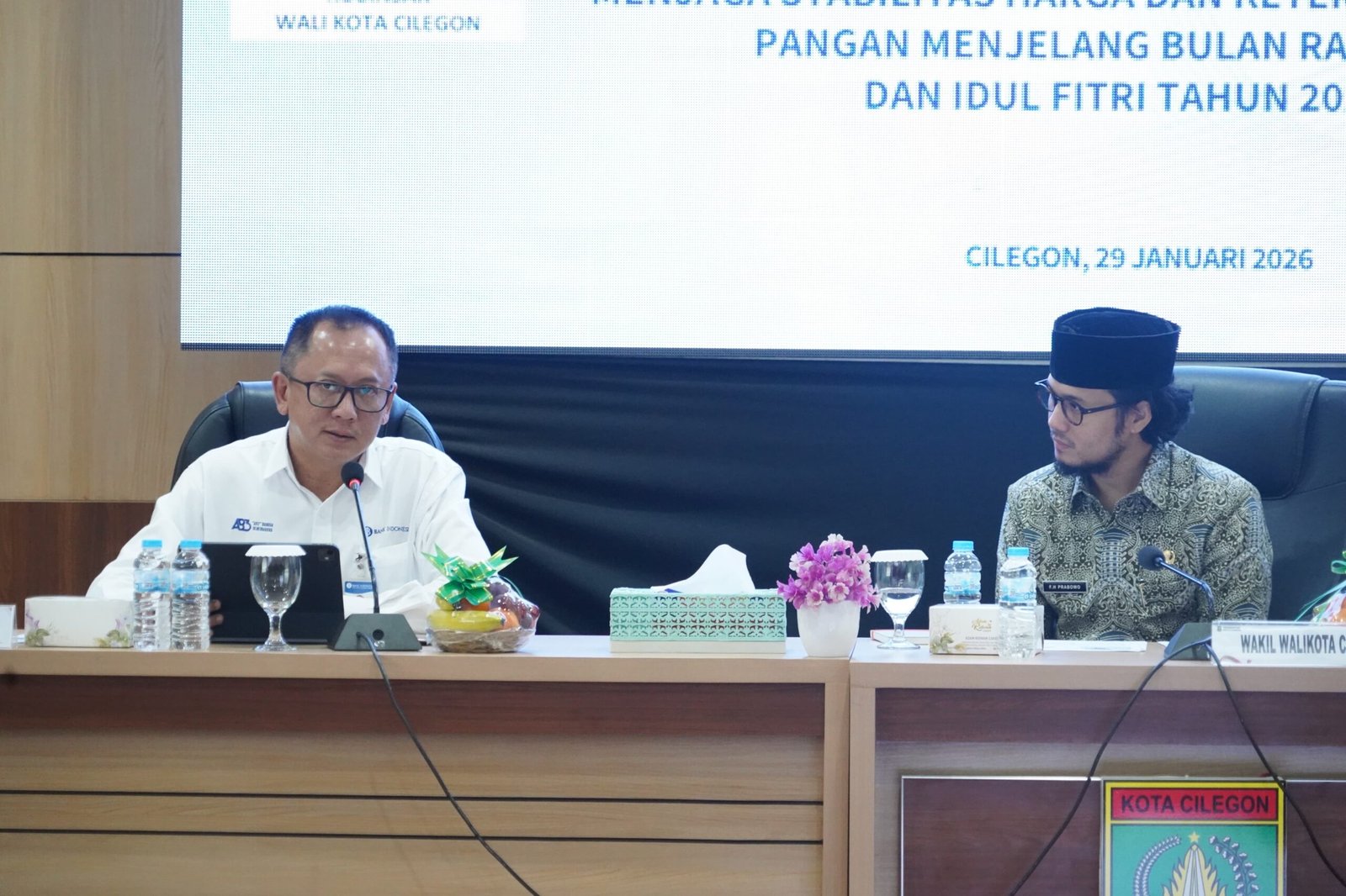 Cilegon,- Matamedia.co.id,- Tim Pengendali Inflasi Daerah (TPID) Kota Cilegon menggelar High Level Meeting (HLM) dalam rangka menjaga stabilitas harga dan ketersediaan pasokan pangan menjelang bulan Ramadhan dan Idul Fitri 2026 yang berlangsung di Aula Setda II Kota Cilegon, Kamis 29 Januari 2026.