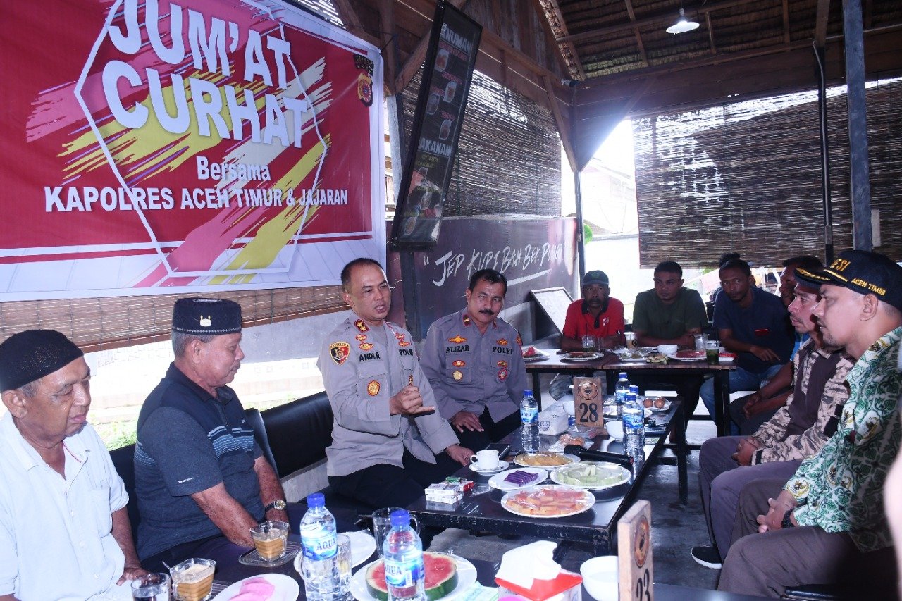 Menurutnya, Program Jum’at Curhat Bersama Kapolres Aceh Timur merupakan program untuk dialog interaktif Kamtibmas dengan warga dalam bentuk penyampaian keluhan, laporan masyarakat, kritik, saran dan masukan untuk Polres Aceh Timur.