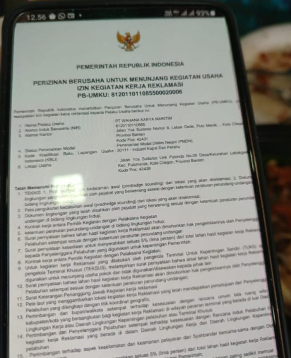 Dalam kesempatan itu, Susi juga memperlihatkan sejumlah dokumen yang menjadi dasar hukum kegiatan reklamasi, termasuk dokumen Analisis Mengenai Dampak Lingkungan (AMDAL), Surat Izin Reklamasi dari Kementerian Kelautan, Nomor Induk Berusaha (NIB), serta beberapa dokumen pendukung lainnya.