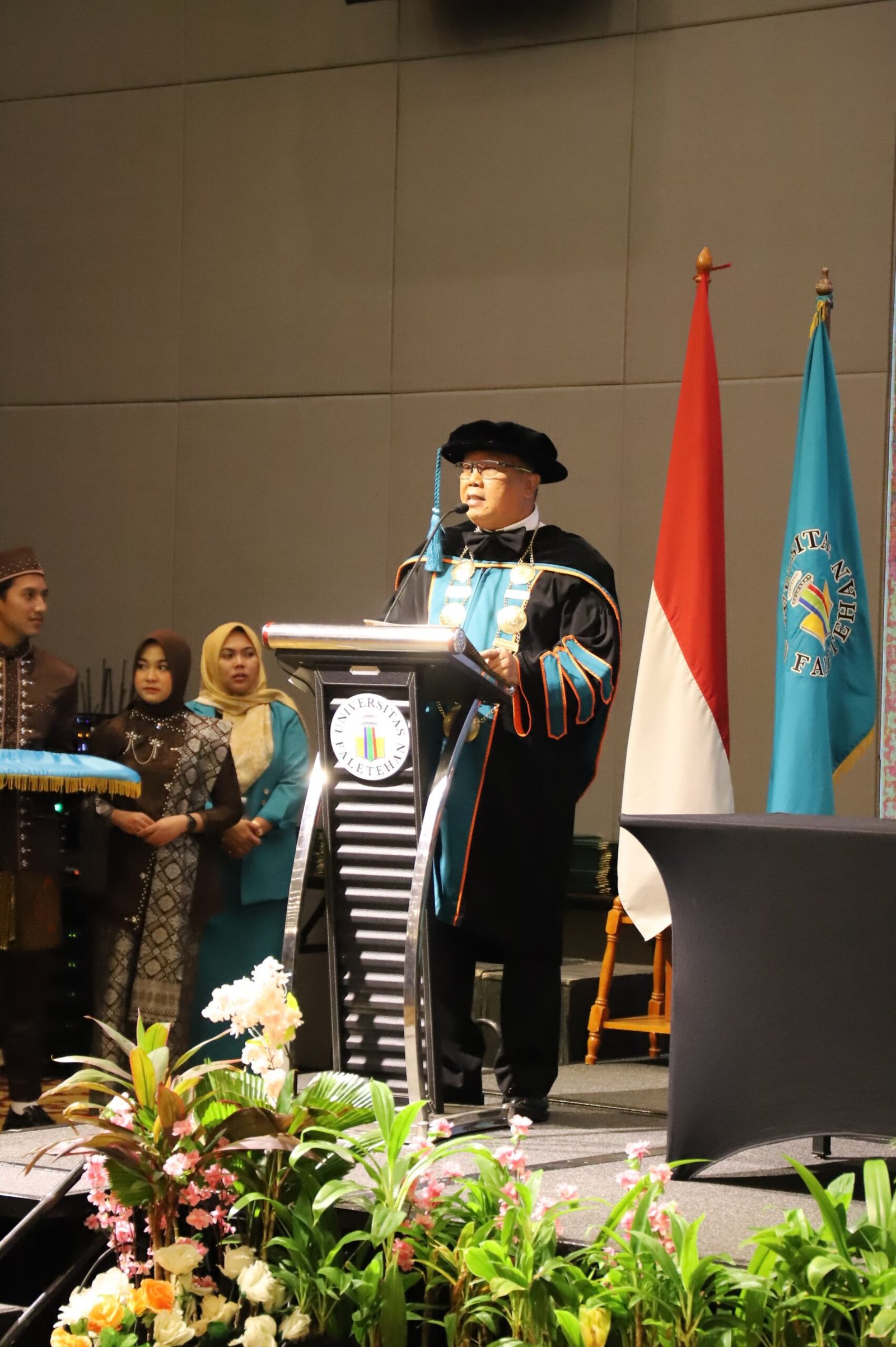 “Capaian ini bukan hanya hasil kerja keras individu, tetapi juga buah dari doa orang tua, bimbingan para dosen, dan dukungan seluruh pihak yang terlibat dalam proses pendidikan,” ujar Rektor UF dalam pidatonya yang mendapat sambutan meriah.