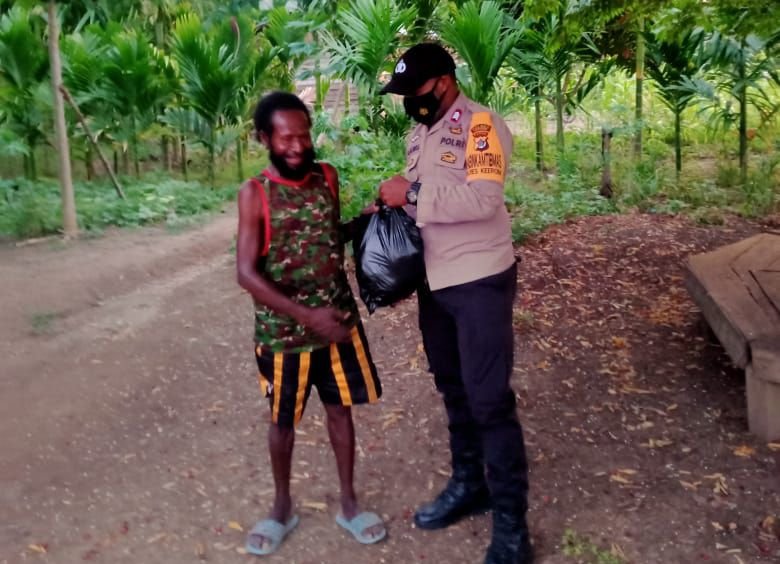 Sekaligus bentuk keperdulian Polri, Dalam kesempatan yang sama Bhabinkamtibmas juga membagikan sembako kepada warga Kampung Baburia