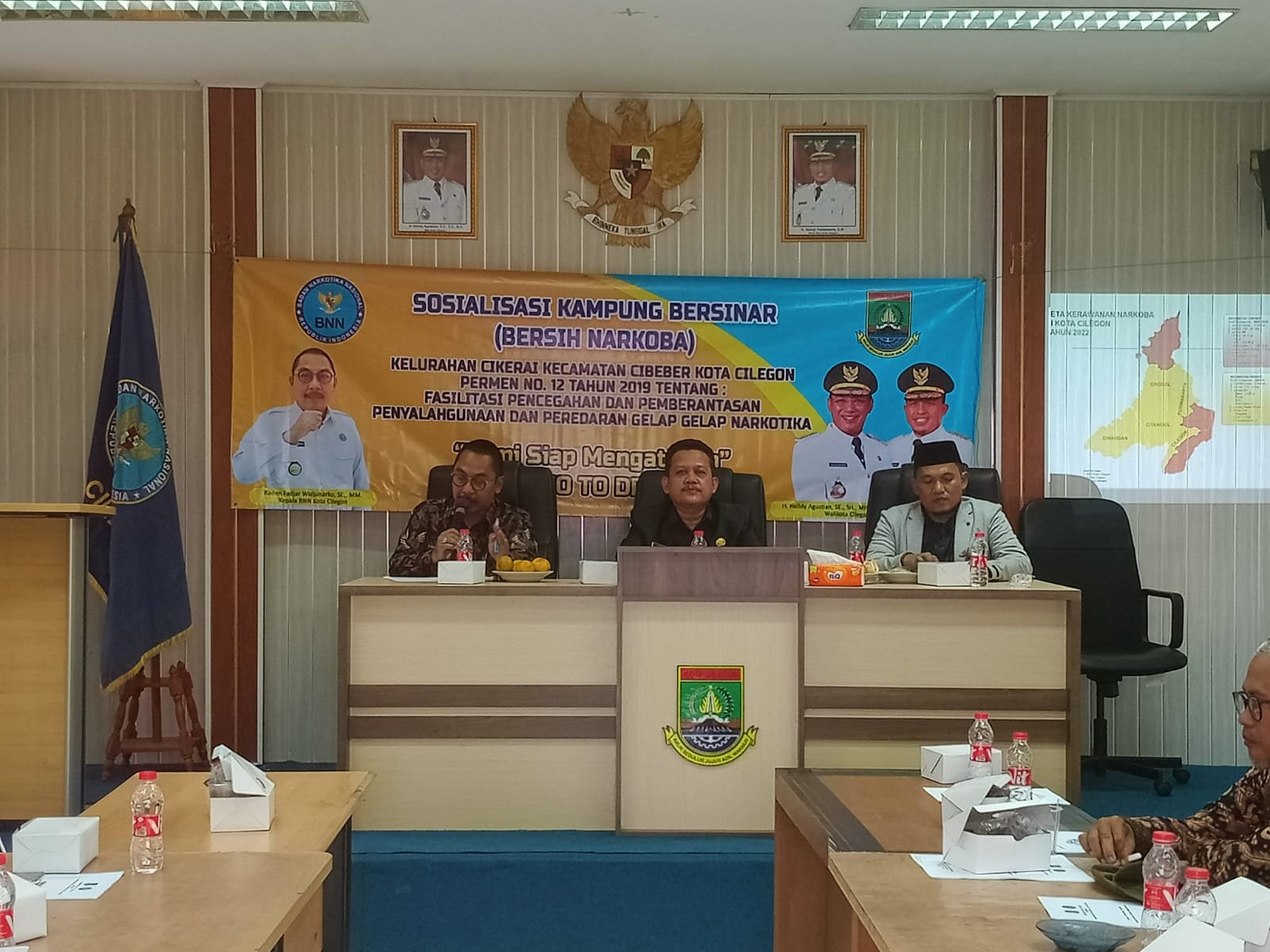 Cilegon,- Matamedia.co.id,- Kepala Badan Narkotika Nasional (BNN) Kota Cilegon, Raden Fajar Widjanarko, melaksanakan kegiatan Sosialisasi kampung bersinar yang di gelar di aula Kelurahan Cikerai, Kota Cilegon yang masuk dalam kawasan waspada. Kegiatan ini dilakukan dalam upaya memerangi bahaya narkoba di wilayah Kota Cilegon.