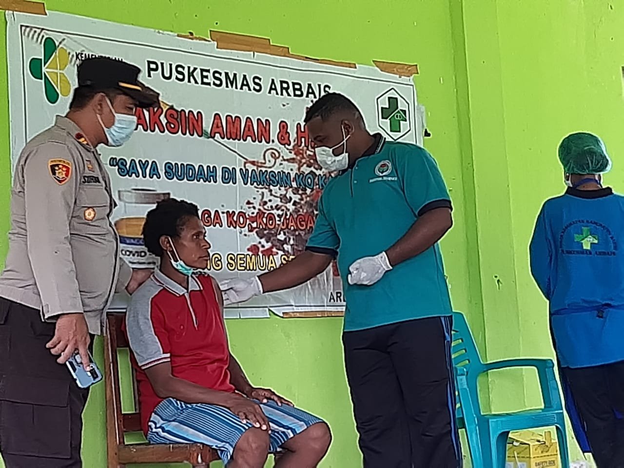 Hadir dalam kegiatan vaksinasi tersebut yaitu Kepala Puskesmas Agustina K. Boseren, SKM.,MM, dr Endah Purwaningtiyas bersama 10 orang tenaga medis puskemas Arbais, Kapolsek Pantai Barat Iptu Suherman SH, Bhabinkamtibmas Bripka Takdir Bakrie, S.Sos dan Kanit Binmas Bripka Iryanto serta masyarakat Kampung Martewar.