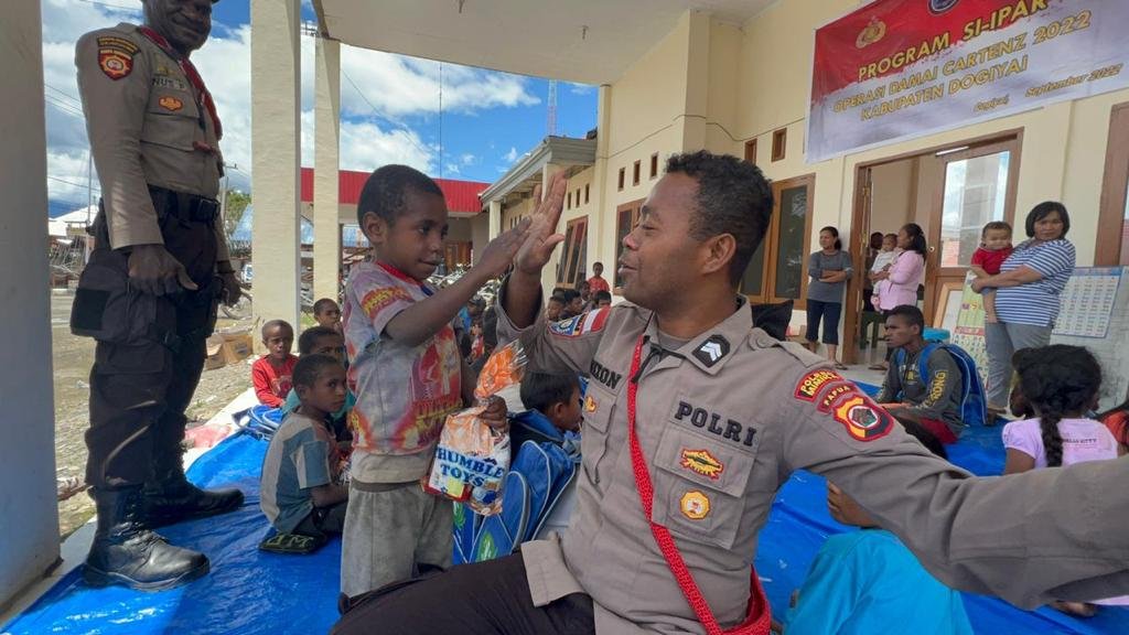 Dogiyai, Matamedia.co.id – Binmas Noken Polri yang dipimpin Iptu Rini Dian Pratiwi, S.Psi.,M.Psi. lakukan pengajaran kepada anak anak dogiyai dengan cara permainan kepada anak anak guna mengerti dan paham dengan huruf serta angka yang dilakukan di Halaman Polres Dogiyai.
