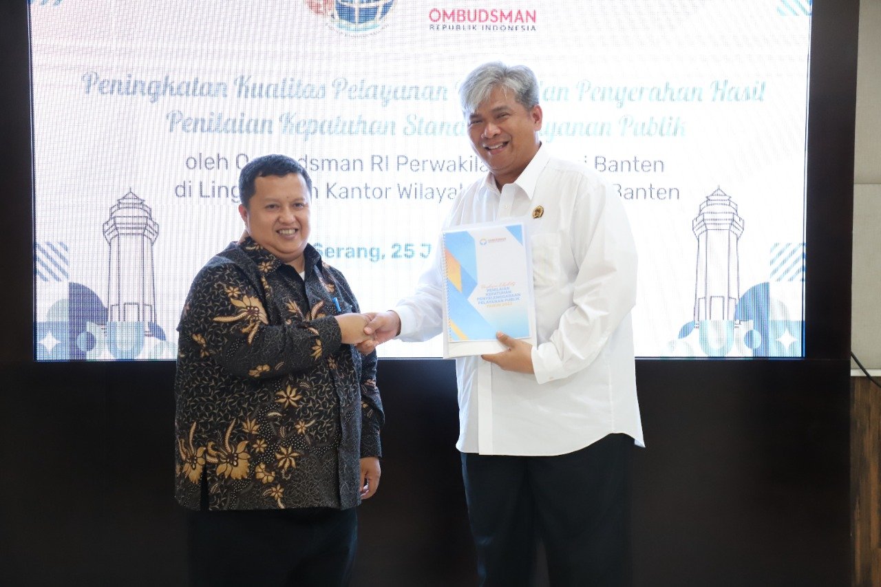 SERANG,- Matamedia.co.id,- Kantor Pertanahan di Provinsi Banten menerima hasil Penilaian Kepatuhan Standar Pelayanan Publik Tahun 2022 dari Ombudsman Republik Indonesia (ORI) Perwakilan Provinsi Banten pada Rabu (25/1/2023).