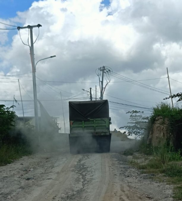 Dari pengakuan warga perumahan tersebut, menurutnya hampir tiga menit sekali truk-truk bermuatan pasir maupun truk yang akan muat pasir melintas di jalan perumahan tersebut. Sehingga setiap ada truk melintas, warga khawatir akan dampak dari debu yang tebal bisa mengganggu pernapasan penghuni perumahan.